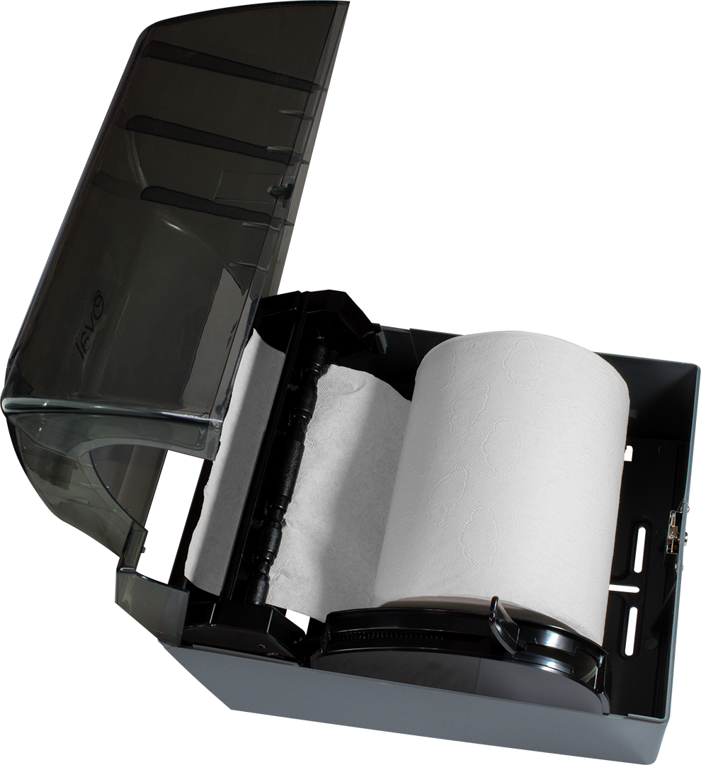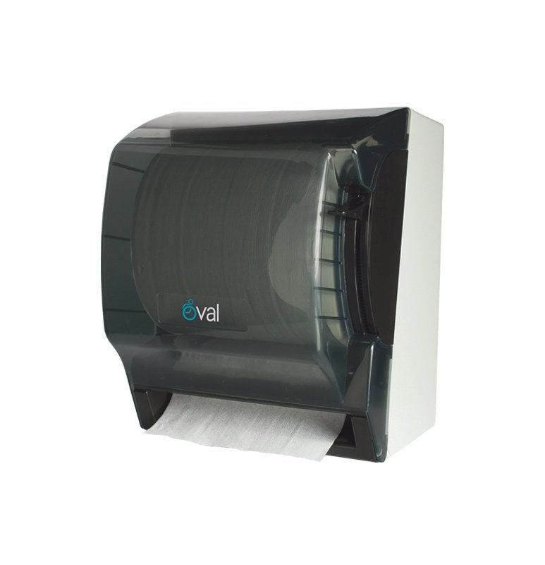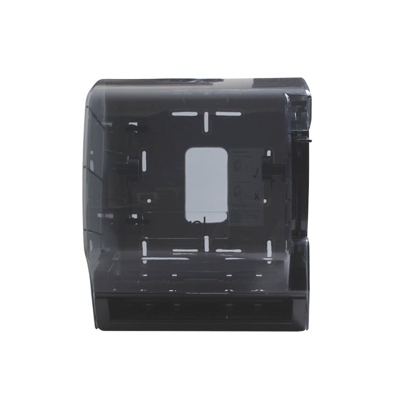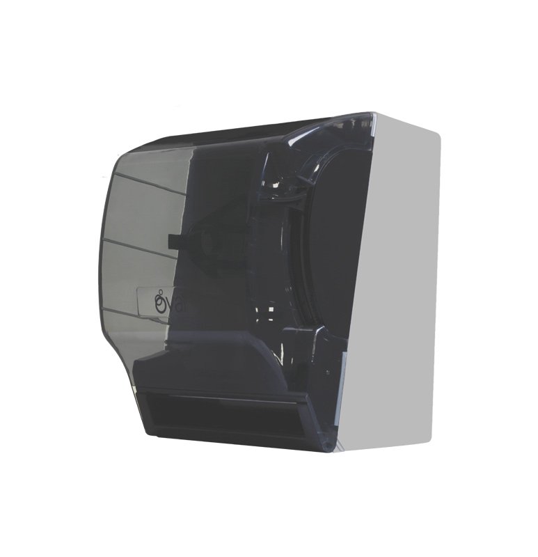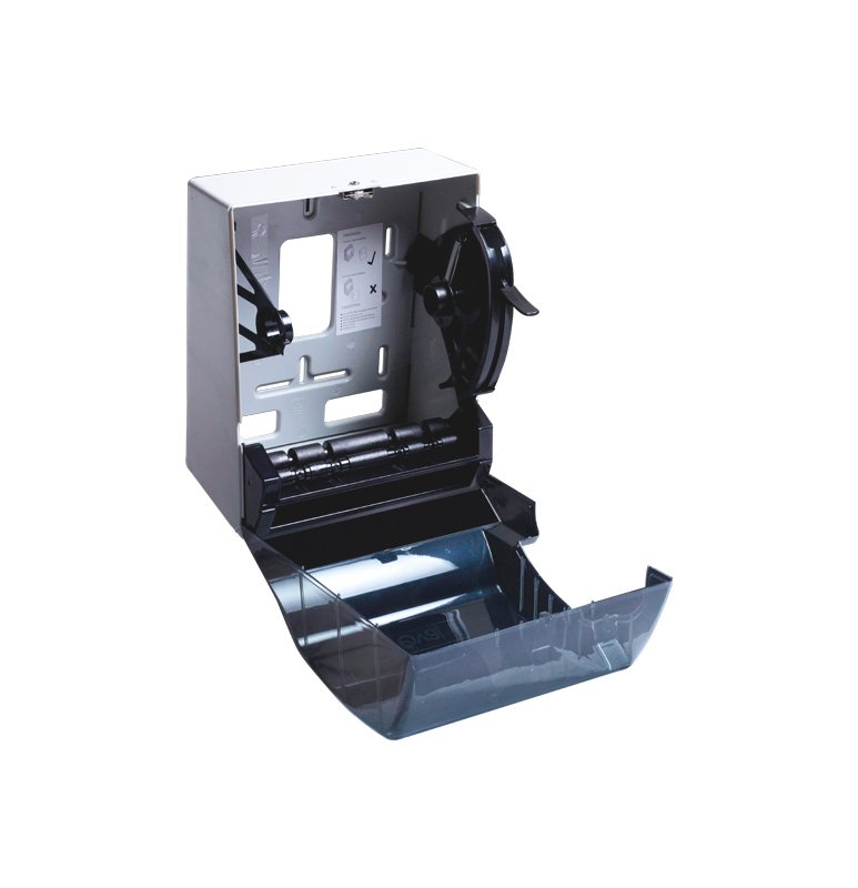 Es un dosificador toalla en rollo universal. Tiene capacidad para rollos de 19 a 20 cm de ancho y de 180 mts de largo. El mecanismo es reforzado para uso rudo / industrial y no requiere más mantenimiento que la limpieza normal. Este despachador dosifica cualquier marca de toalla en rollo universal, ya sea de hoja doble o sencilla. La tapa o cubierta es transparente, lo que permite ver cuándo cambiar el rollo, utiliza llave para abrirse. Este despachador viene con dos llaves y cerradura metálica.