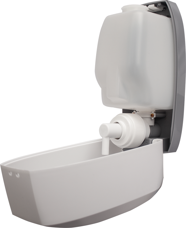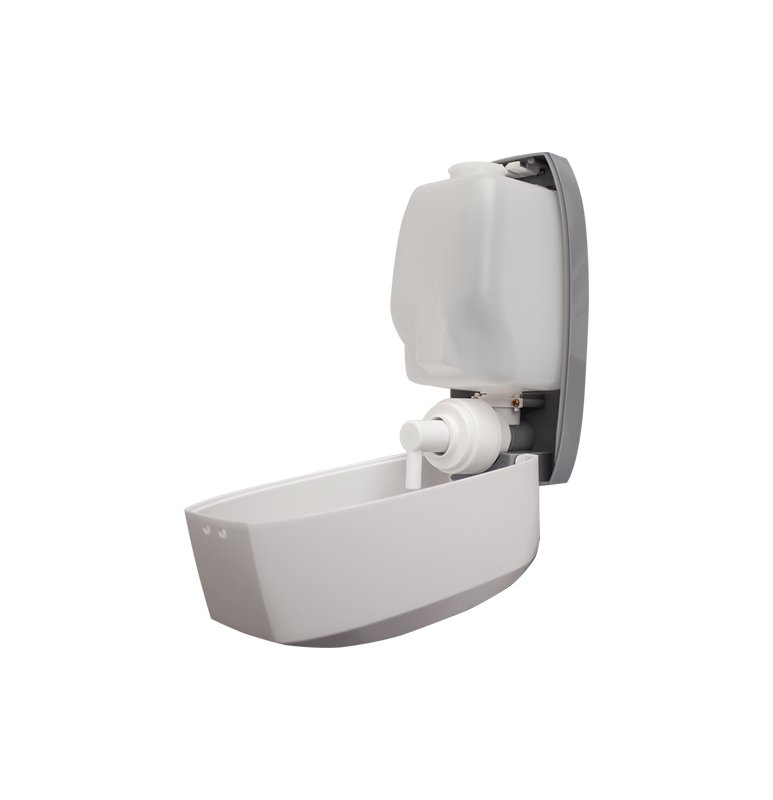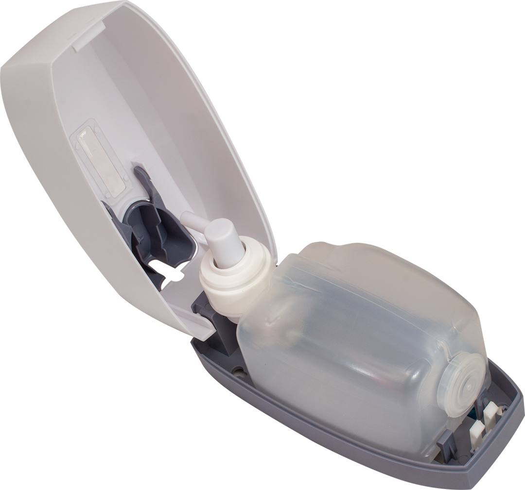Es un dosificador de jabón para manos en espuma. Esta jabonera puede dosificar cualquier marca de jabón diseñado para espuma a granel. Su mecanismo permite mezclar el jabón con el aire y hacer una espuma densa para un conveniente lavado de manos. Cada dosis equivale a 0.7 ml de jabón. Es un dosificador completamente manual por lo que no requiere baterías. El tanque de la jabonera tiene capacidad de 750 ml. La tapa o cubierta cubre tanto el tanque como el mecanismo y cuenta con cerradura. La jabonera viene con 2 llaves.